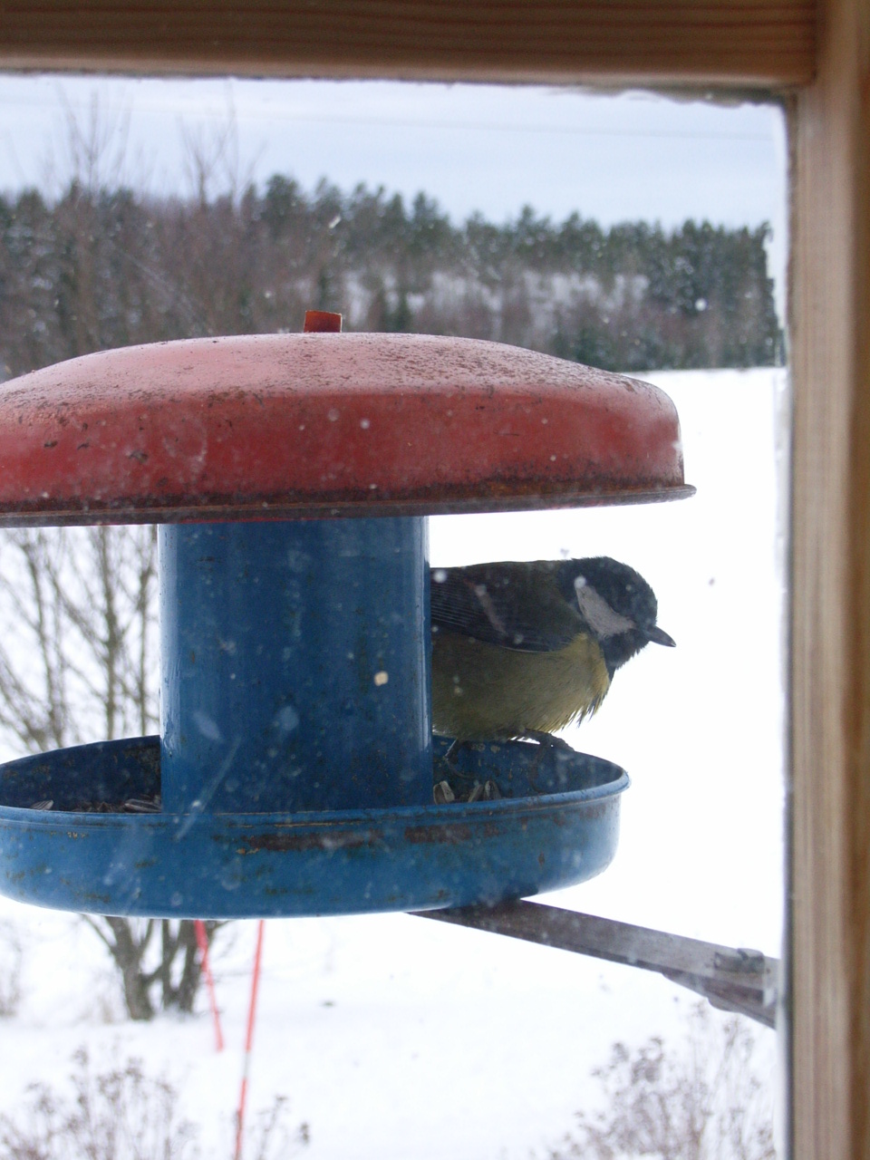 Humöret är lågt, men Sigge är vacker där han sitter på köksgolvet. Och talgoxar med flera småfåglar flaxar och far utanför fönstret!