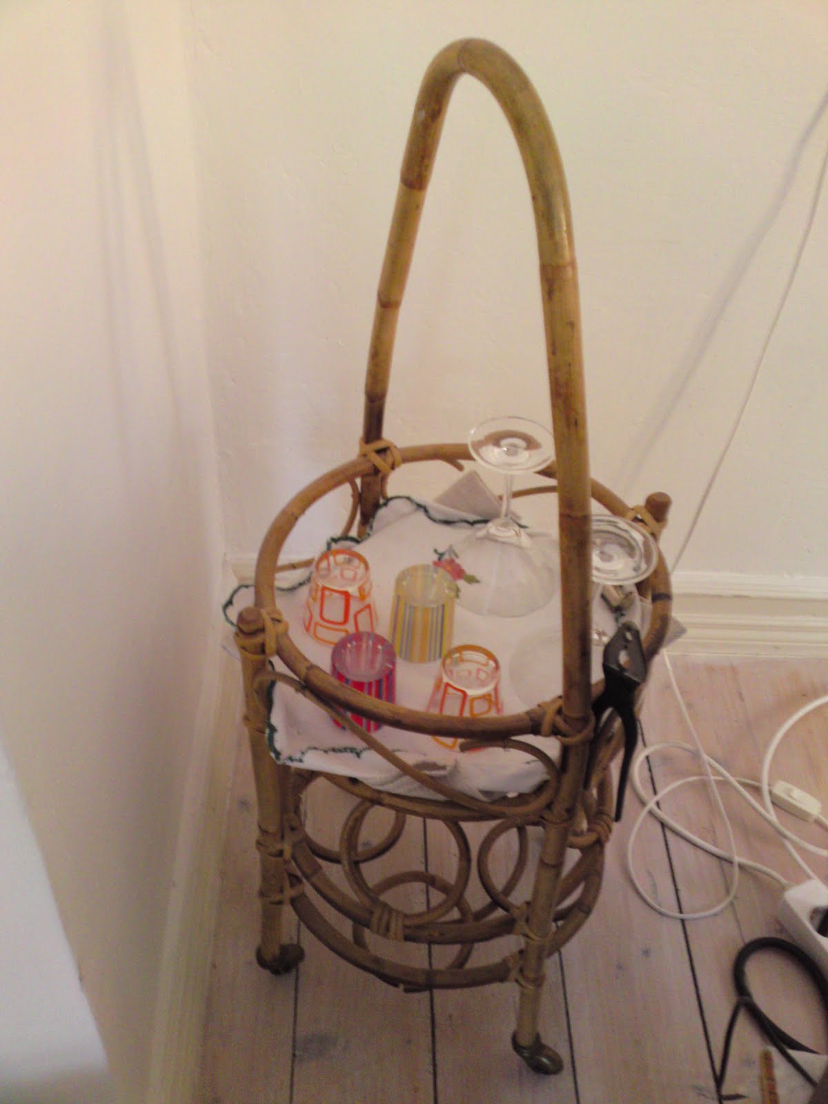 Vackra glas, några älsklingstallrikar, några bra vassa knivar och skärbrädan av en befaren planka med dekorativt hål i (hittades under segeltur nära Fredlarna i Stockholms skärgård). Skärbrädan som min älskade gjorde åt mig. Tekanna och stor mugg, bra kastruller och stekpannor/-grytor, över huvud taget bra redskap. Svärmors gamla sybord, mosters mässingsmortel och fotot på min ledsna mamma och hennes andra syster. De tavlor jag numera har kvar. Cykeln, och ett par svampkorgar, lite sänglinne, handdukar och vackra gamla dukar. Rottingvinstället på hjul, bara för att det är så knäppt. 40-talstaklampan med glasskiva som kostade 400 kr att laga. Sängen. Min Tempur-kudde.