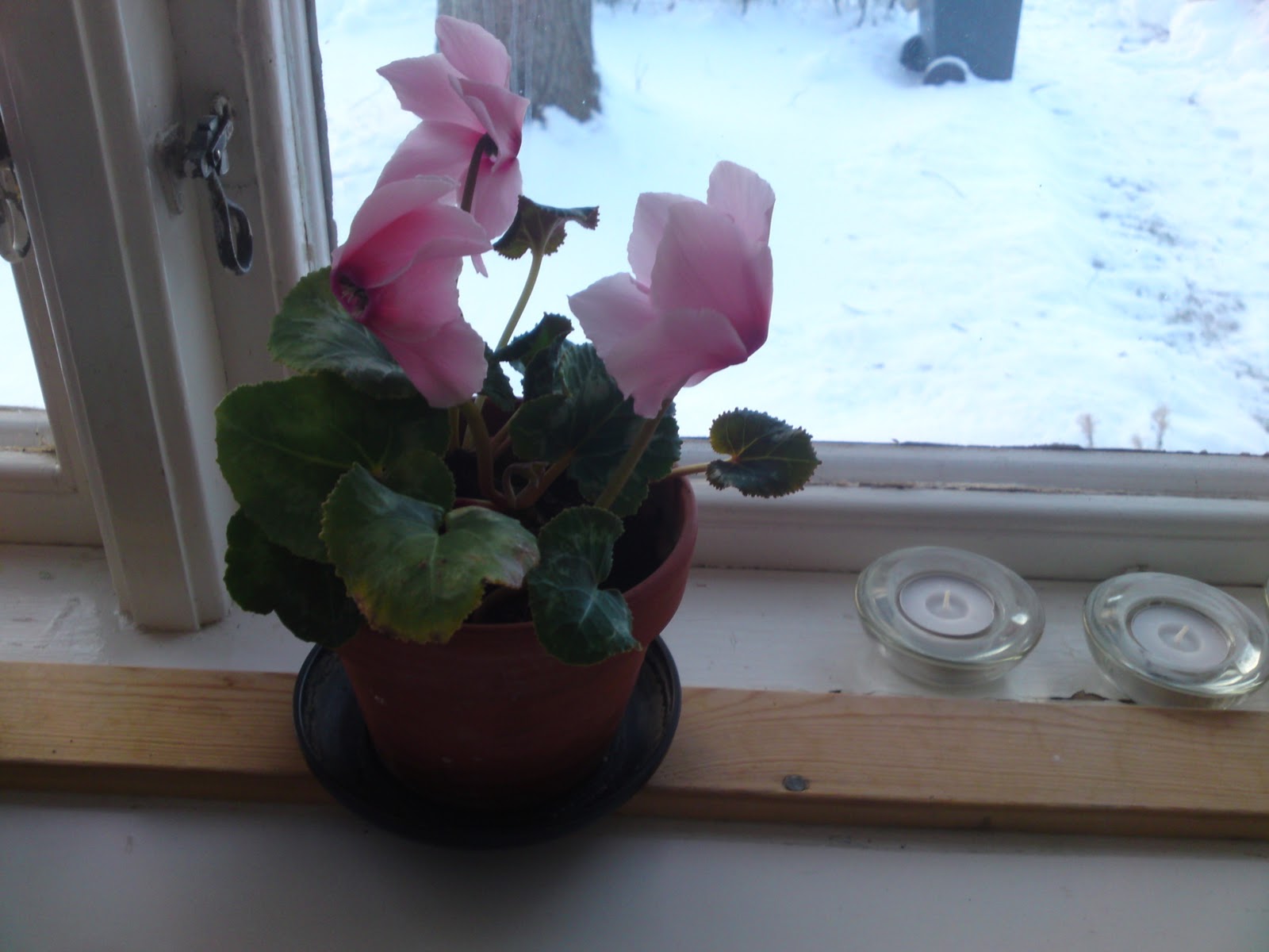 Glad blev jag av att ni hörde av er, bloggkompisar – i morgon är det dags för terapeuten igen, kanske blir jag glad av det jag kommer på där också… Kram på er! Ännu en liten glädje, ovan, en cyklamen som jag för flera år sedan hittadespå en komposthög och tog hand om – den jobbar på och blommar fortfarande.