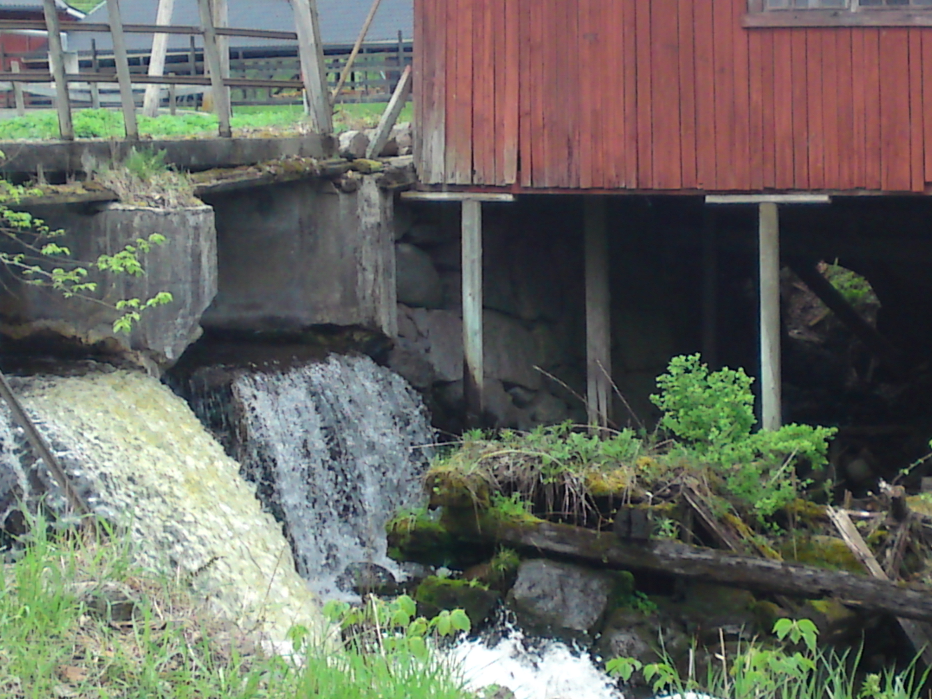 Sedan tog vi en liten promenad, mannen och jag, ner till sjön och tillbaka. Vi förundras över hur det går att nästan helt dämma igen inloppet till ån i ena änden, och dämma igen helt vid den bro som ska ersättas av en ny, alldeles utanför mitt hus. Allt grävande och körande resulterar i en lerig och hal väg där man får klafsa i stövlar och se sig för… Det lilla vattenfallet är borta och vatten porlar i stället ner i ån längre ner över en stenbädd och stora rör som träder ”i kraft” om det blir för mycket vatten. Skönt med frisk luft dock.