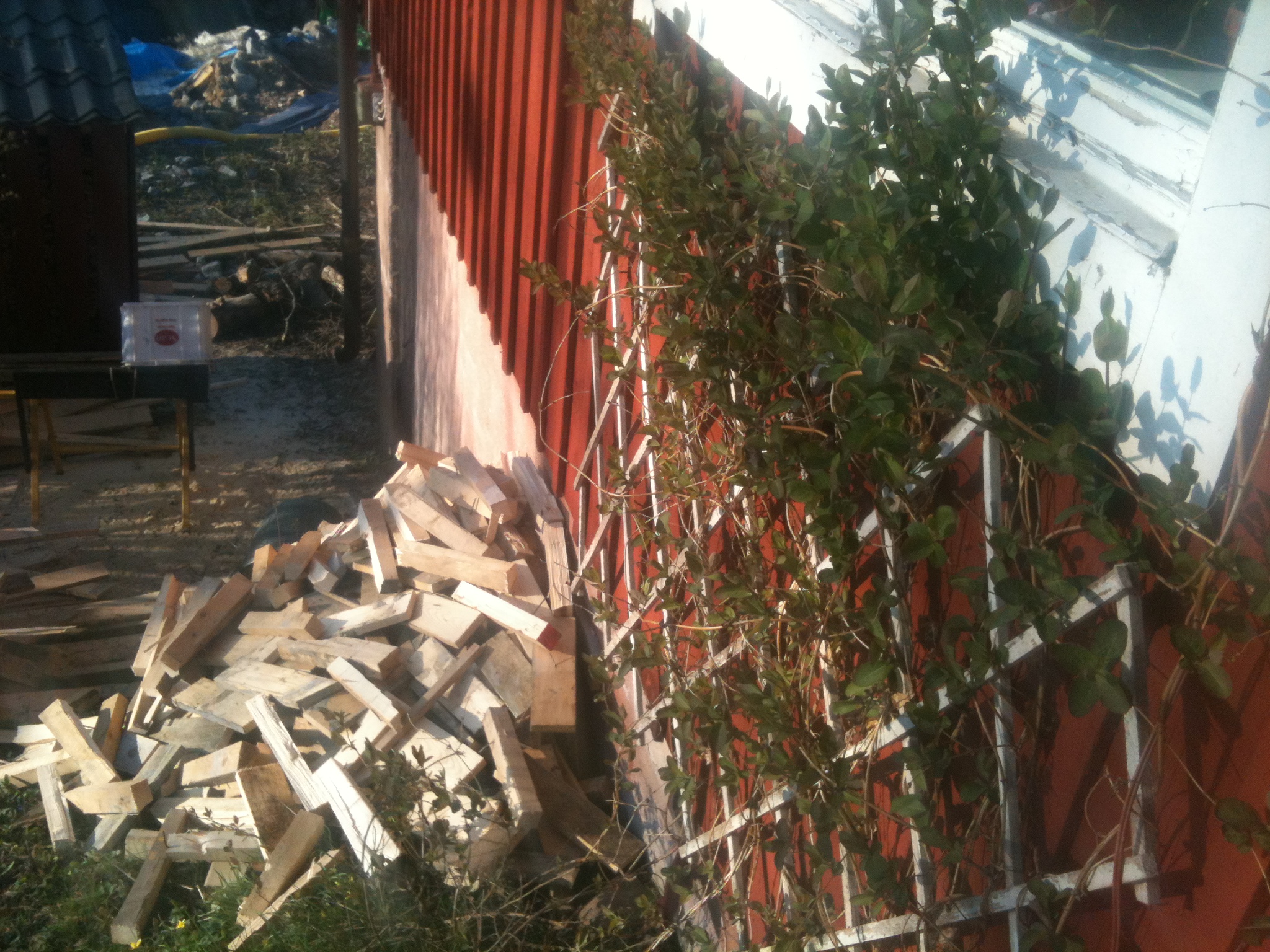 Utanför huset har jag plank som väntar på att kapas, och klyvas en del av dem. Och kastas på en hög, eftersom jag inte riktigt räknat ut hur jag ska få plats med alltihop i den lilla vedboden.