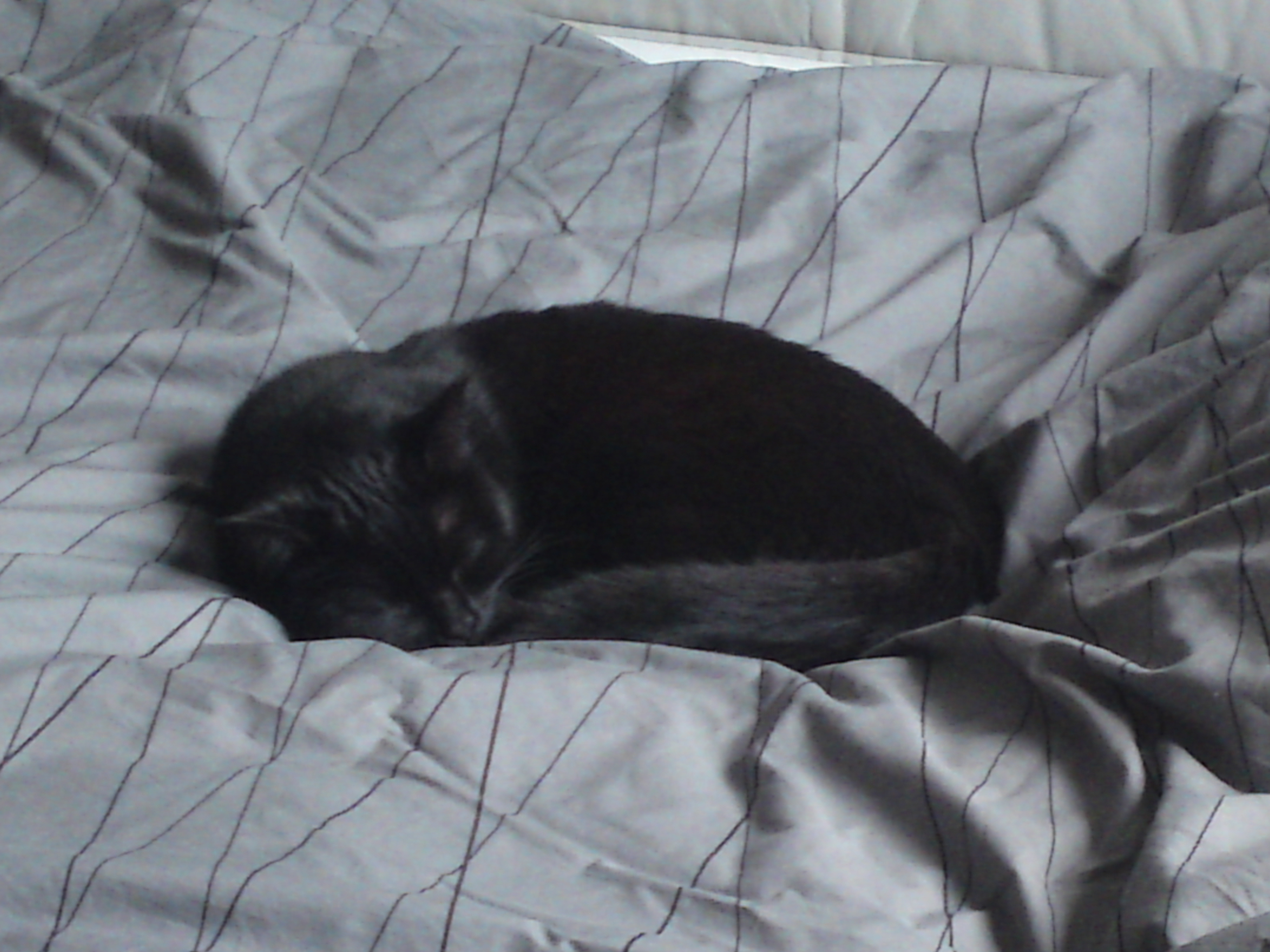 Hon tog sig till affären och biblioteket igår trots ymnigt snöfall och hala krokiga vägar. Därmed kunde hon göra en god potatisgratäng till middag (även om hon glömde köpa grädde). Den räcker även idag, liksom tjälknölen.