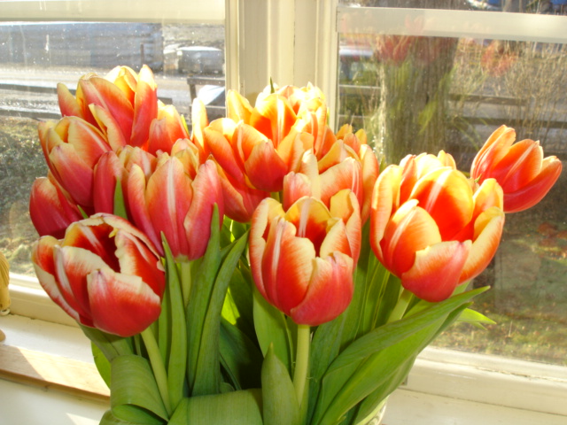 Födelsedagstulpanerna är fortsatt vackra, de fick stå kallt medan hon var borta.