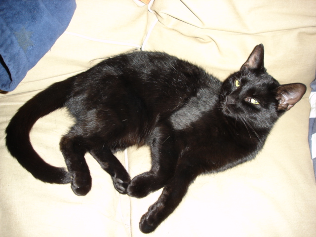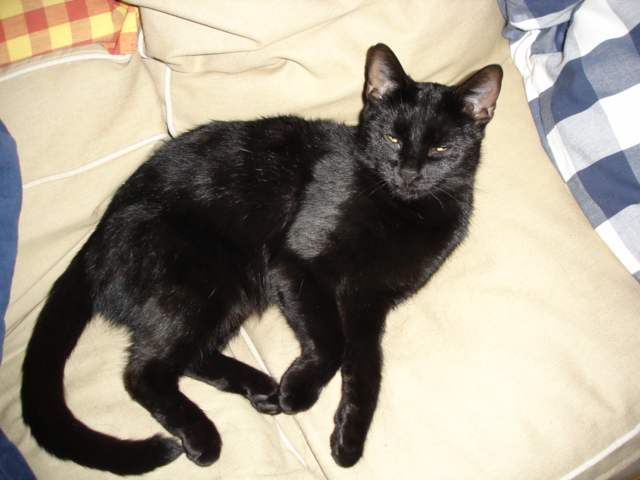 Vimsan är hemma igen, efter att ha varit borta i ett dygn drygt. Mitt i natten fick jag för mig att gå upp och kolla – och där låg något svart i soffan, något som sträckte på sig och lade sig tillrätta igen. Var hon varit vet jag inte, men mat har hon nog fått någonstans. Ingen bra idé att mata främmande katter…