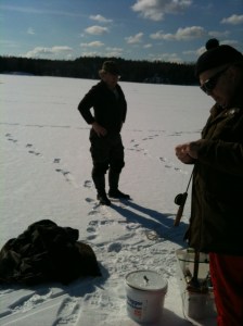 Hjärnan förslår inte, den kan inte omfatta det som var du och dit liv och det som var du och din död. Jag ger upp, sväljer gråten, försöker få halsen att slappna av och ögonen att sluta rinna över. Din pappa tittar på teve, det är honom väl unt. Hans ord när du var död ”jag kunde inte beskydda honom” finns för alltid i min hjärna, liksom det han sade när han ringde mig ”det här går inte att linda in, Mats är svårt skadad”. Det gick inte att göra bra eller mildare, du var död, säkert redan när du kom till sjukhuset. Vi såg dig, din pappa och jag – du var lugn i döden. Vilade i den. Det gjorde mig konstigt lugn. Tog mig hela vägen, genom bouppteckning och begravning. Tog mig hit där jag är nu. Jag lever. Du är död. Och du levde en gång, du älskade din dotter, du fanns. Det är jag tacksam för. Här vinterfiskar du och mannen min, ni är båda döda nu – kanske fortsätter ni fiska…