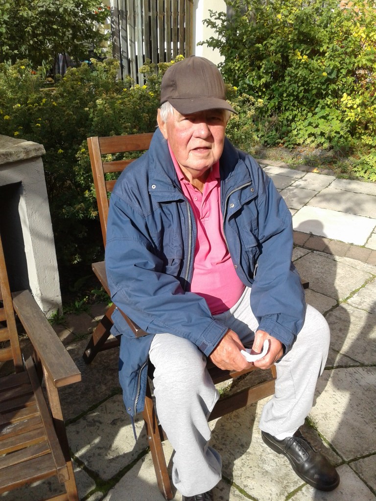 Nu har vi varit ute i en dryg timme, suttit på en bänk i solen och på gården i en stol, gått runt ett par kvarter. Idag var det jobbigt att gå för Jan, men vi kom hem.