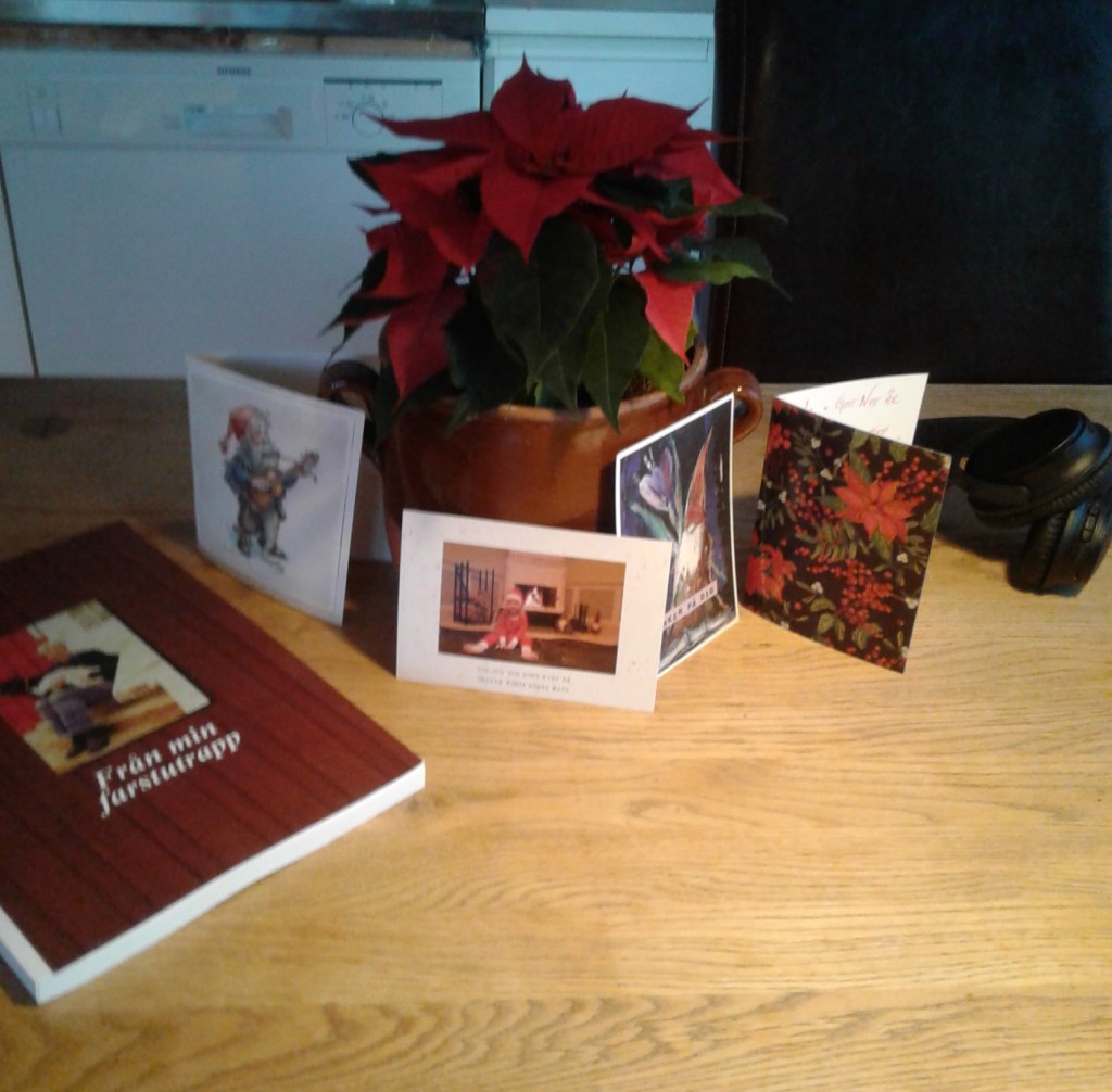Yngste sonen ringde, två gånger – andra gången för att berätta hur glad han var över en julhälsning från en tidigare chef. Och sondottern har också ringt. Ena syrran. Helen, kära fina omtänksamma och framför allt generösa vännen, ringde nyss. Och andra syrran. Vedspisen brinner. Jag har stängt dörren till Jans rum för att inte förlora värme i huset.