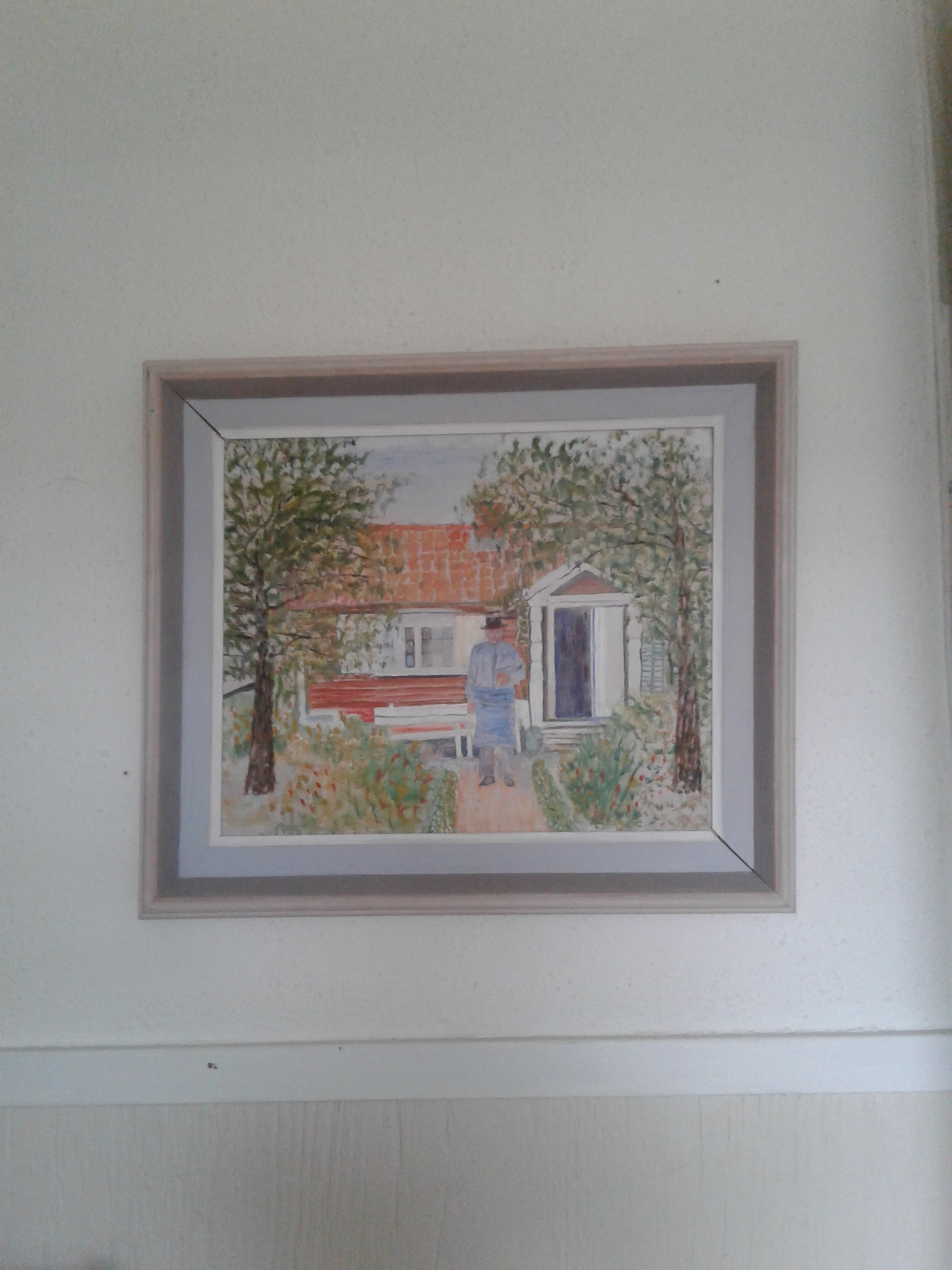 Ska flytta en byrå från mitt sovrum till gången in till duschrummet. Lådorna går bra, men själva byrån är tung och ska fram där det egentligen är för trångt… Nåja, jag brukar fixa sådant, en trasmatta under till exempel och så dra i stället för att lyfta. En timme senare står byrån på rätt plats, jag har packat linneskåpet fullt, och byrån med. Det gick lättare än jag trodde, morfars stol står nu där byrån stått, och tavlan som jag självsvåldigt förknippar med honom står än så länge på stolen. Väggarna här är besvärliga, hårda och svåra att spika i. Men även det gick till slut, när jag tog en vanlig inte alltför lång spik i stället för tavelkrok. Nu hänger tavlan där den ska. Och jag ser den bland det första jag ser när jag öppnar ögonen om morgnarna. Det är bra.