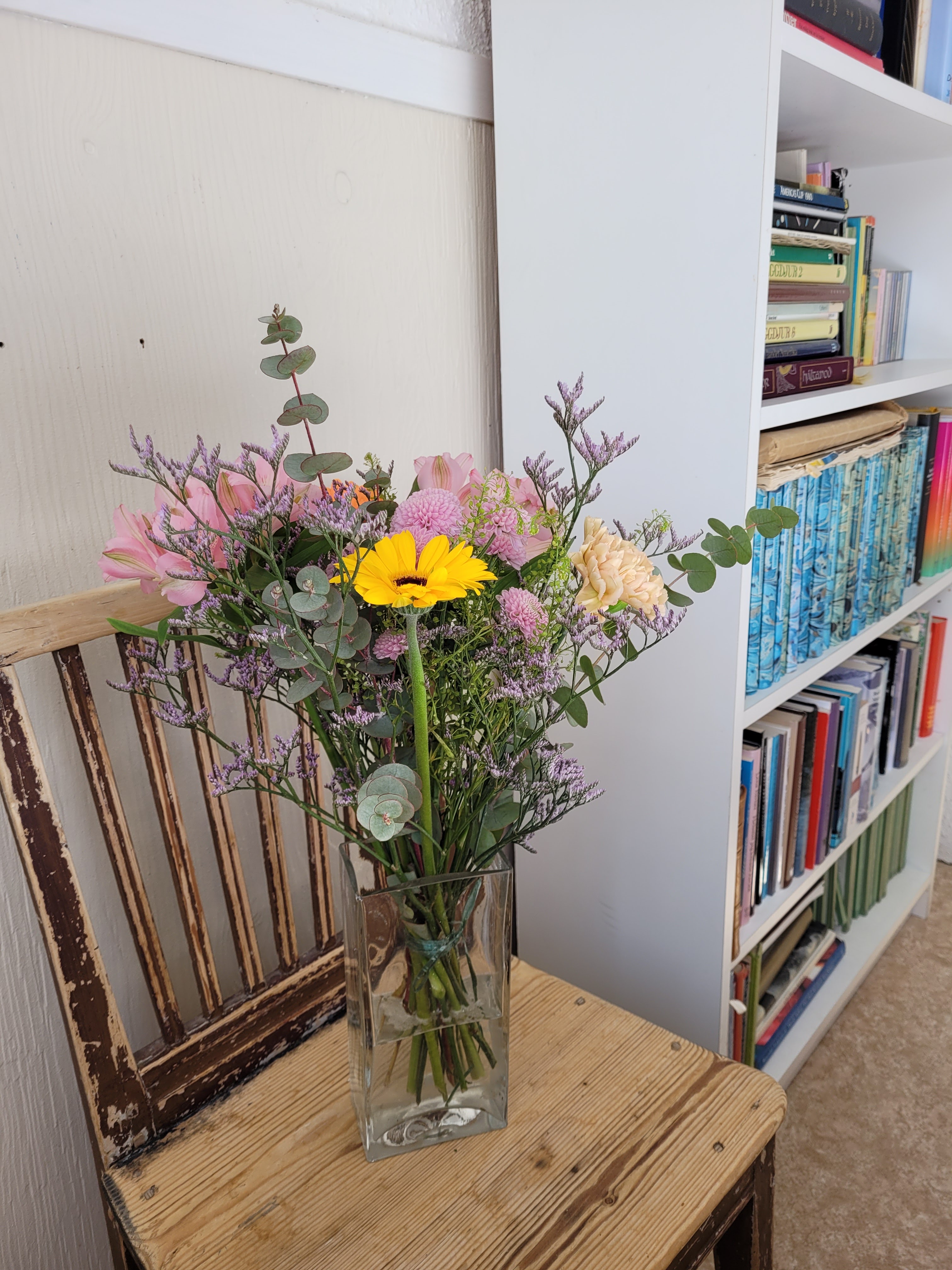 10 april 2022 – hemma igen efter en fin födelsedagsfest hos Erik och Lotta igår. Har tagit hand om och fotat alla vackra blommor, lagt in på FB och skickat till Barbro efter lite trassel. Bett henne skicka till Karin, glömde lägga till henne som mottagare. Barbro har också fått måtten på min svarta långa linneklänning, den är slut. Hon kan sy en ny, jag behöver bara betala tyget.