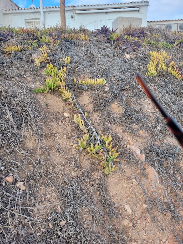 Så här såg det ut längs ”havsstigen”, inte så vackert – men liv. På andra sidan stigen ligger havet