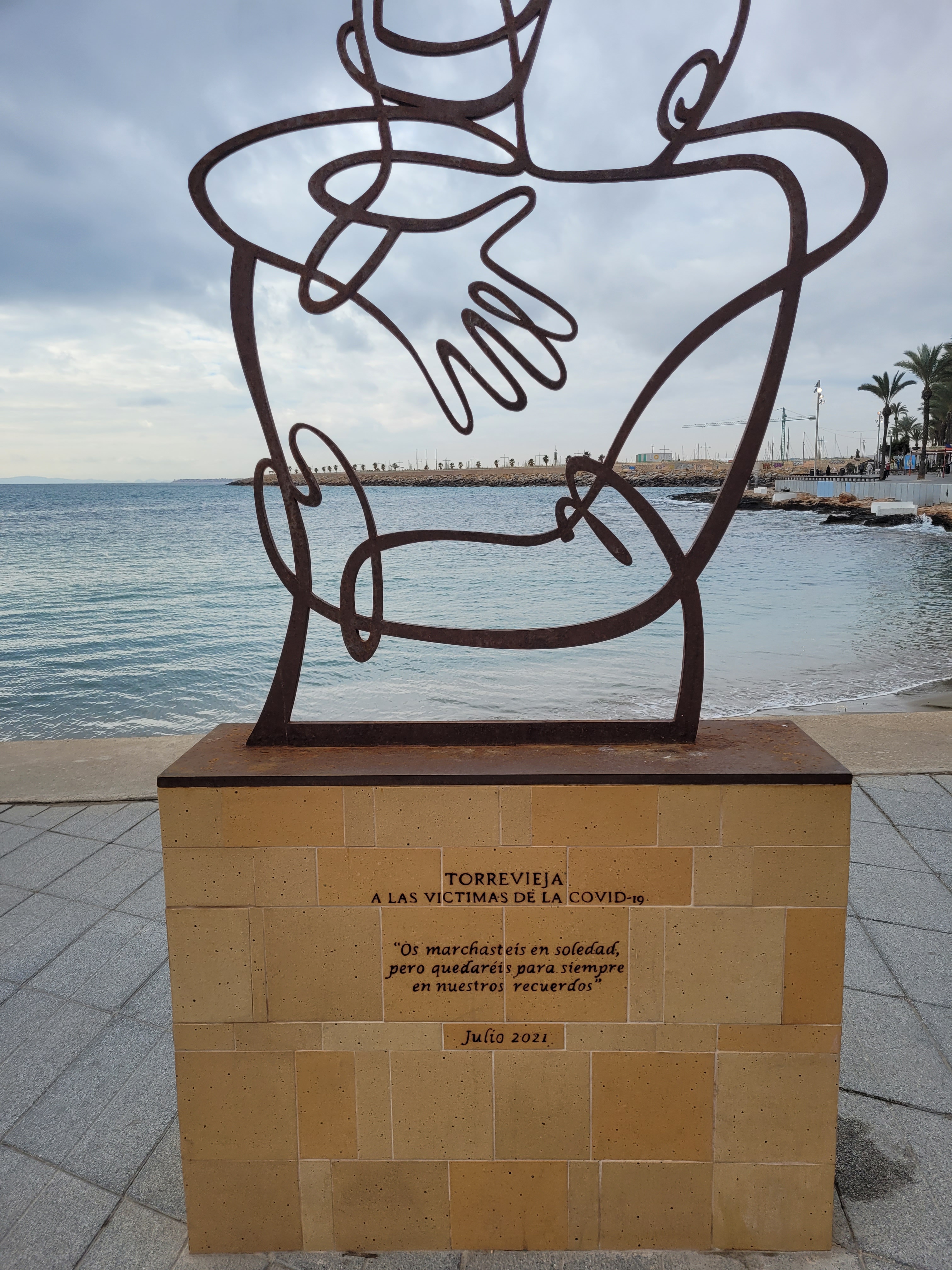 Det här monumentet stod vid stranden i Torrevieja, tillägnat de som dog i covid 2019 – min klena öveersättning: ”när ni dog var ni ensamma, men ni finns för alltid i vårt minne” – ensamheten i döden i covid var nog ensammare än död annars…