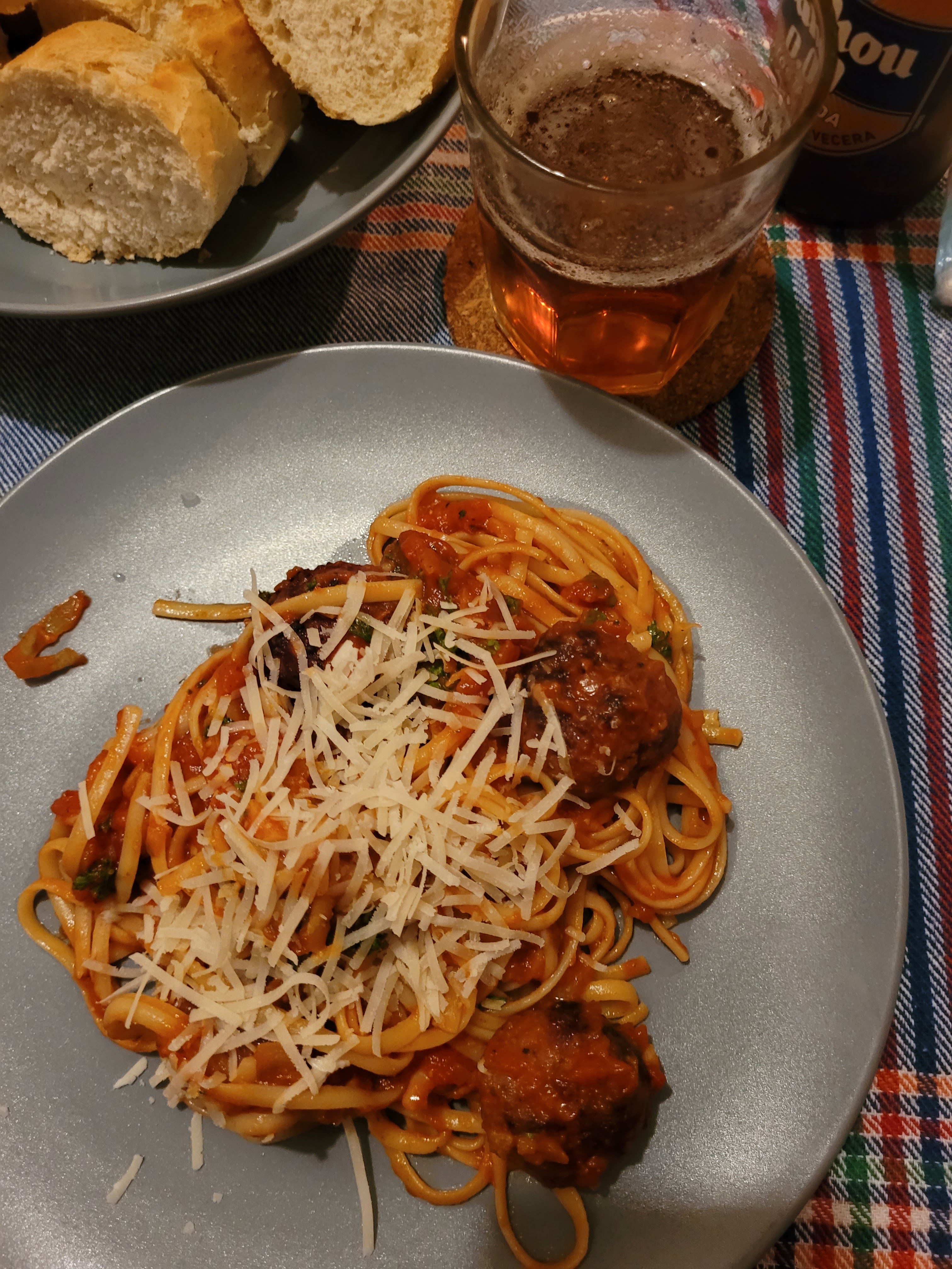 Nu är tjejerna och handlar, kanske blir det köttbullar till middag. Jag behöver inte göra någonting, bara äta. Och de är duktiga – igår blev det fantastiskt goda vitlöksbröd med mozzarella till resten avpastasalladen från dagen före, och gambas, aioli och pesto. Mums. Den här veckan använder vi diskmaskinen.