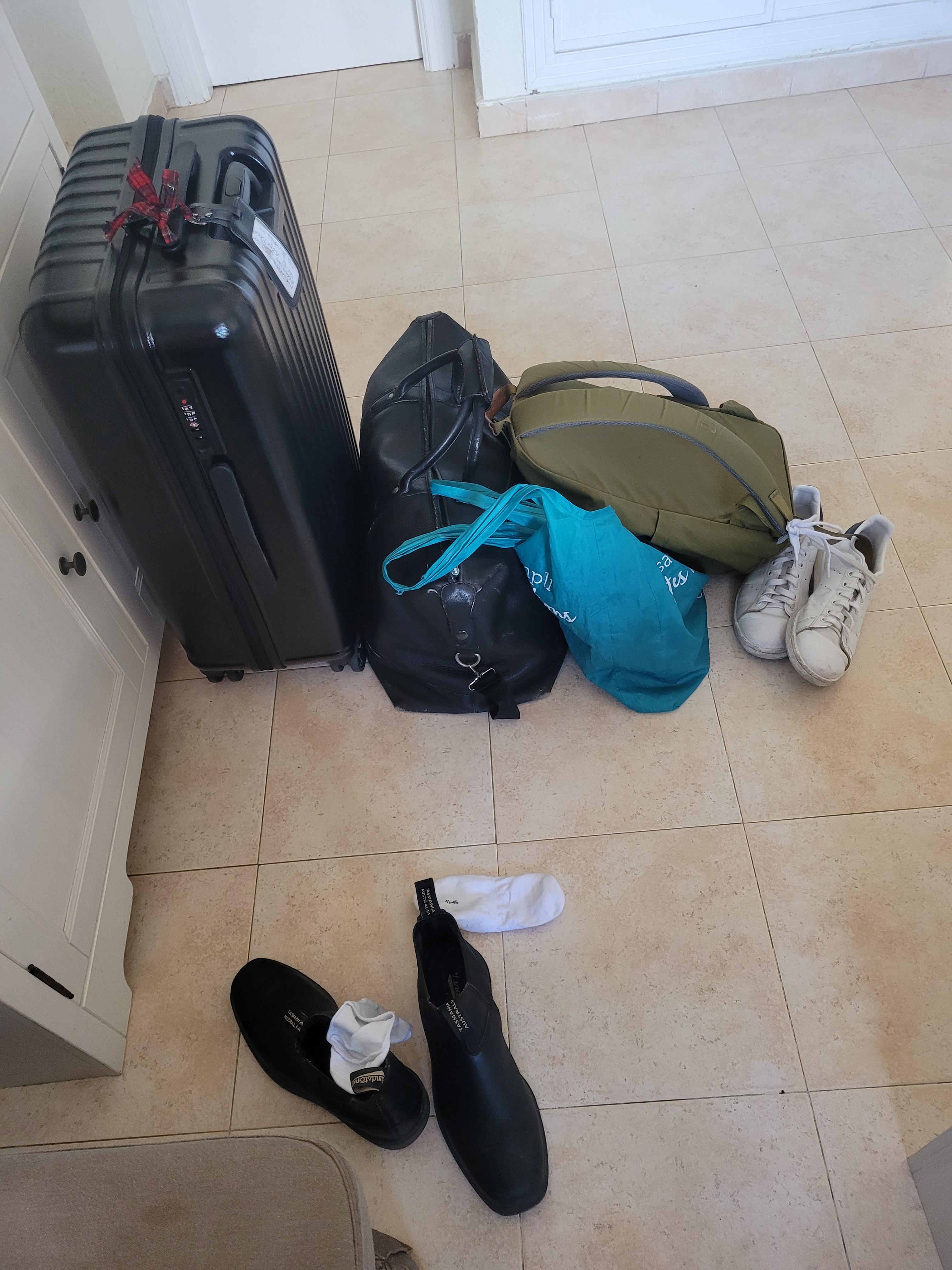 Har två apelsiner kvar till i morgon bitti. Kom ihåg att jag hade mina boots i ett skåp sedan jag kom hit, har inte använt dem här… Inbillar mig att jag har packningsläget under kontroll.