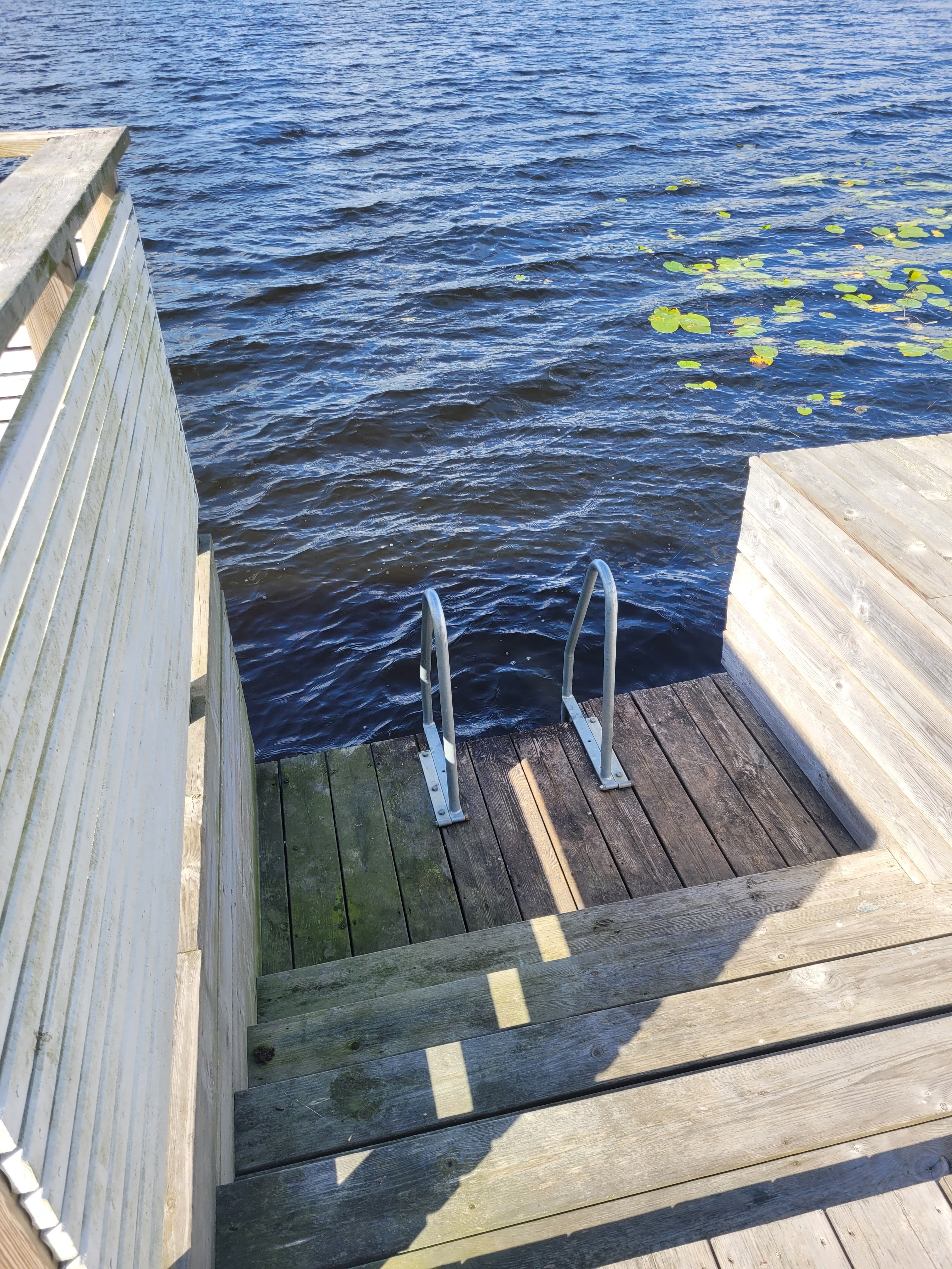 Lördag, väldigt blåsigt. Moln och sol, halvklart och 17 grader säger mobilen, som också varnar för hårt väder. Frukost vid åttatiden. Efter frukost går jag ner till sjön, trots att det blåser så. Och tar ett snabbt dopp i svallande vågor. Skönt, för första gången kändes vattnet varmare än luften.