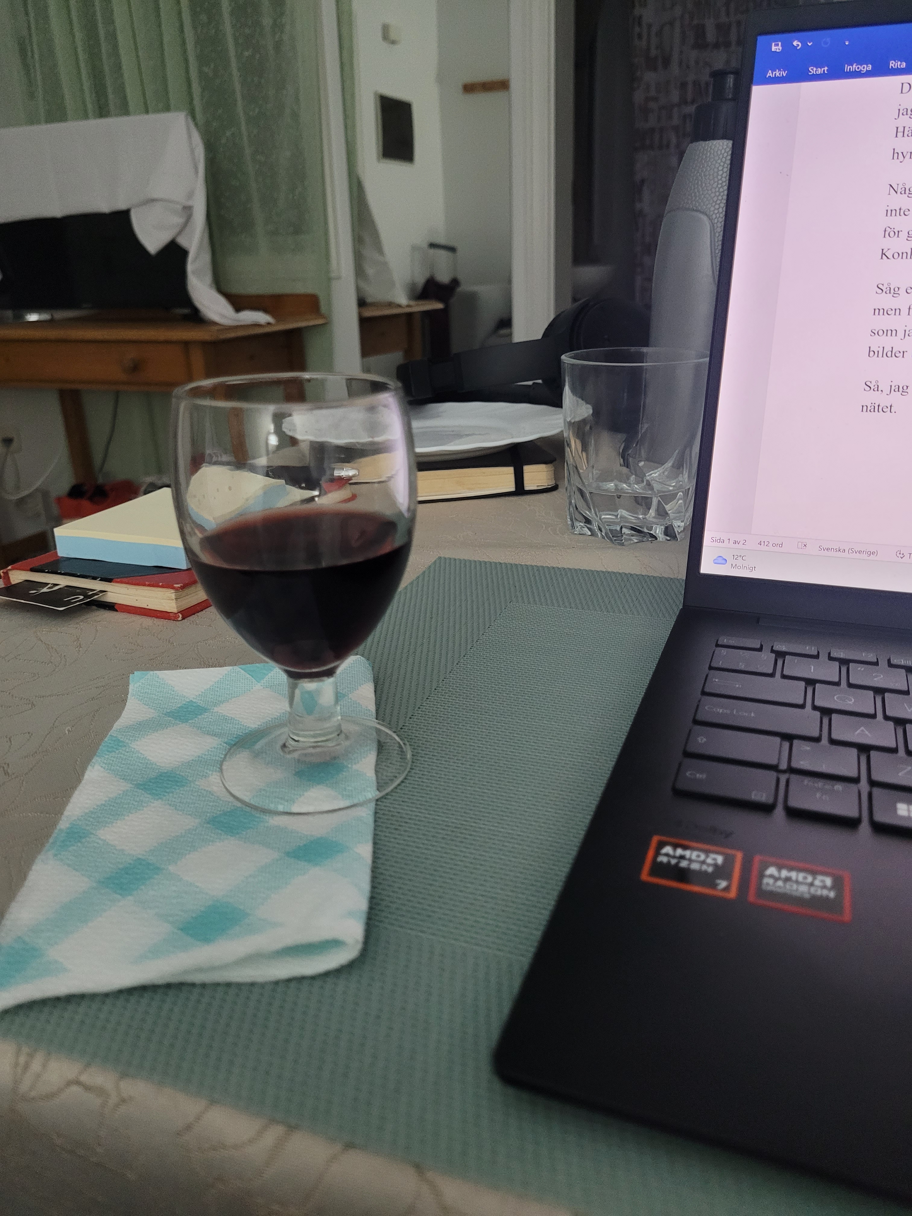 Så, jag pratar med yngste sonen, äter päron och ost till ett litet glas rödvin. Och famlar runt på nätet.