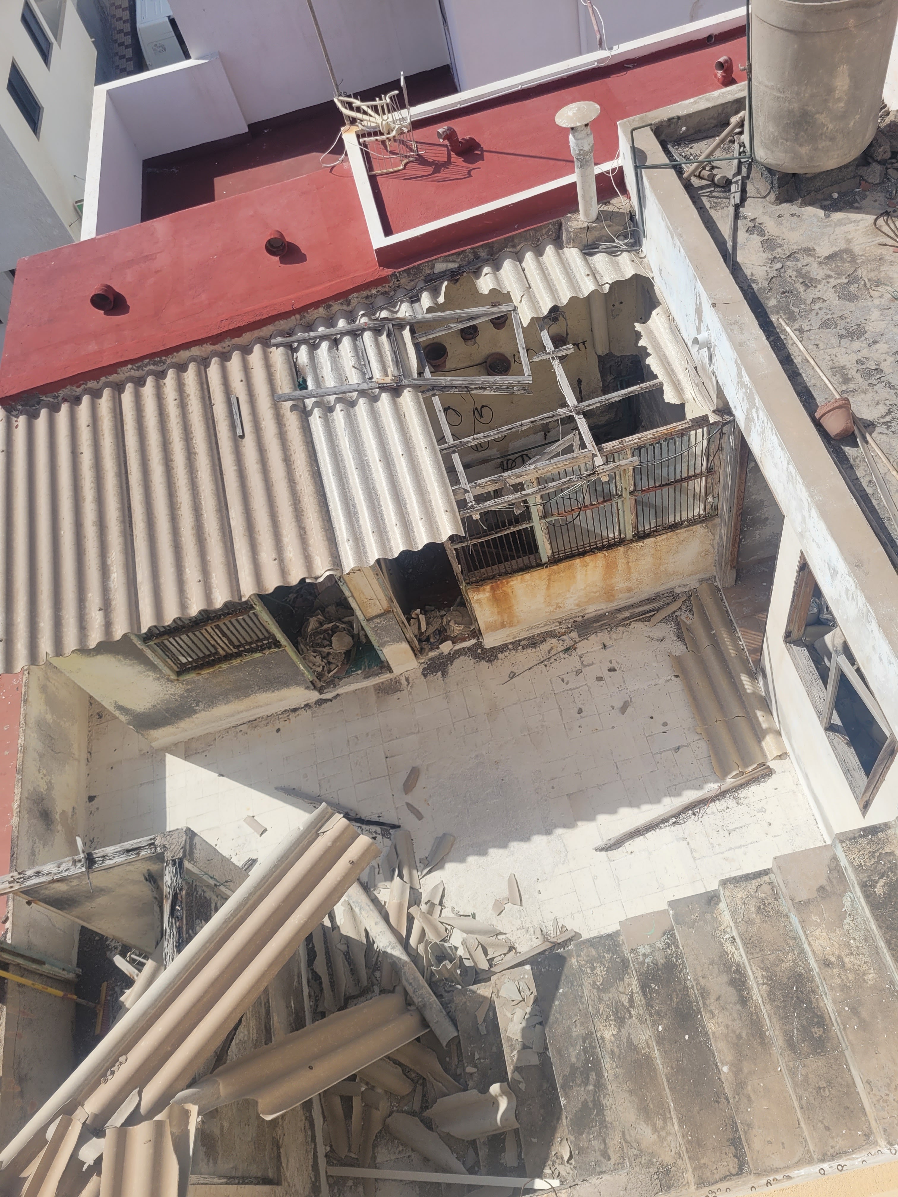 Häruppifrån kan jag se att grannhuset är mycket förfallet. En ruin, där duvorna bor i resterna av taket. Sorgligt, samtidigt som det gör mig nyfiken. Hur och varför? Ett hus här måste ju vara värt någonting. Och resten av husen är mycket välvårdade.