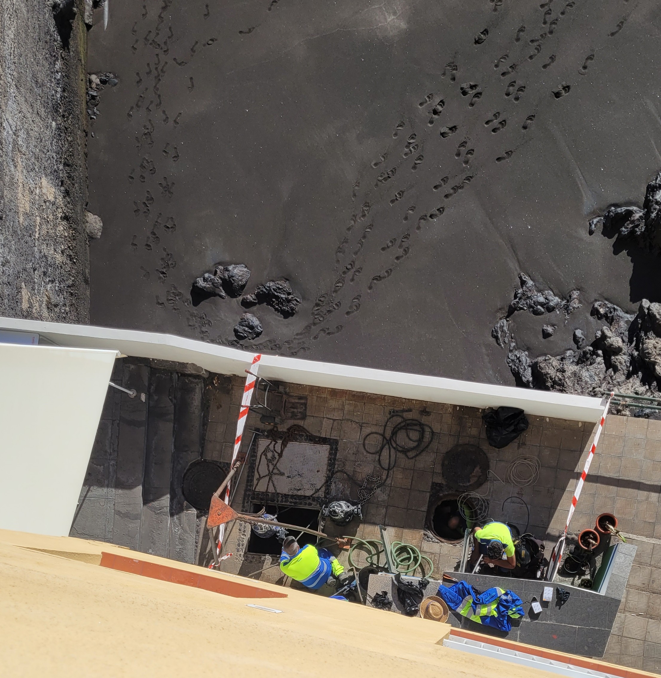 Har duschat och smort in. Nedanför mitt fönster pågår någon sorts ”avloppsarbete”. Tre män iförda kommunala arbetskläder drar slangar i brunnar, en gubbe står nere i ena öppningen. Kanske kollar de bara kvaliteten, kanske gör de något annat, något reparerande.