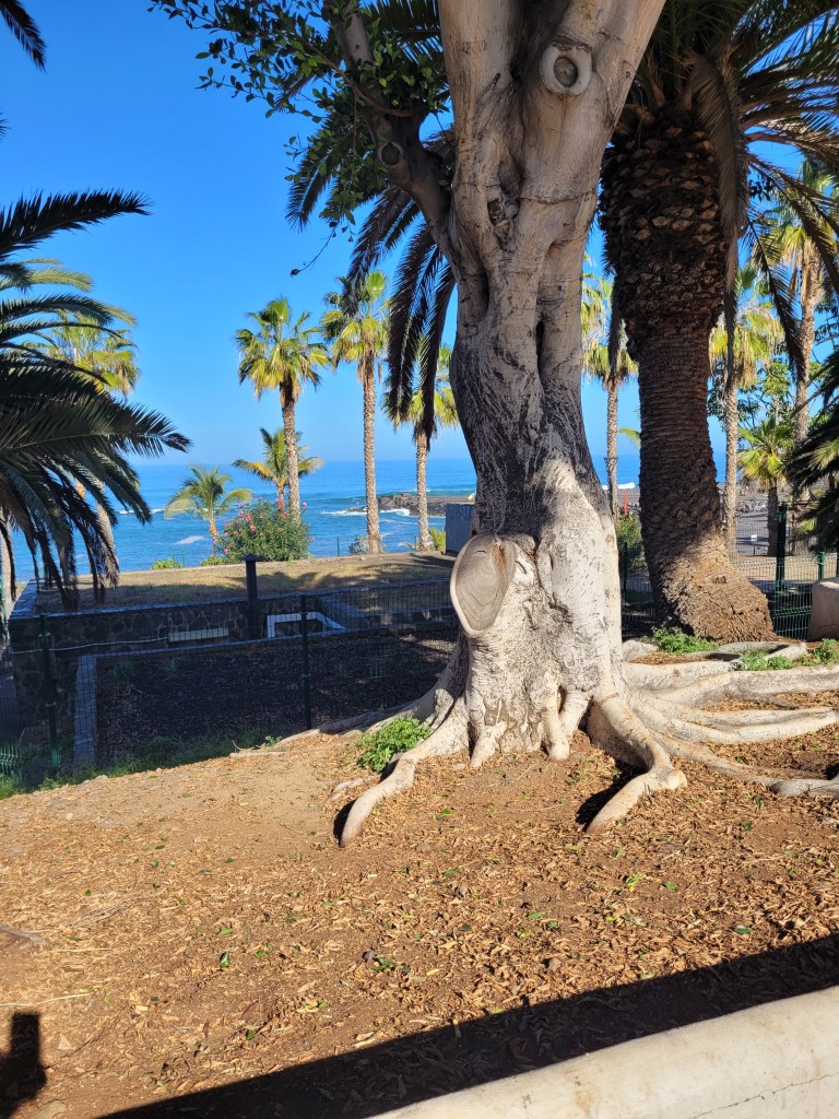 Jag ser hur det lite överallt pyntas och fixas inför kommande säsong med nya och flera turister. Växter i planteringar byts ut, idag gallrades ogräset som dolt hönsen i häckarna längs stora vägen in mot Puerto. Glädjande nog hörde jag ändå en hes tupp gala när jag gick in mot stan. Kanske kan hönsen smita in i Loro Parque genom något hål i stängslen, om de behöver gömma sig. Kul att de finns där, och att de får kycklingar.