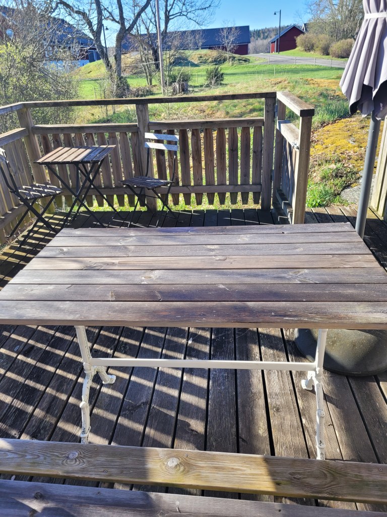 Torsdag, SOL. Bara fem grader men det blir mera. Gör fika, och glömmer bort, lagom ljummet när jag minns. Glömde sätta pån äggklockan också, men äggen hann i alla fall inte koka torrt. Den här gången.