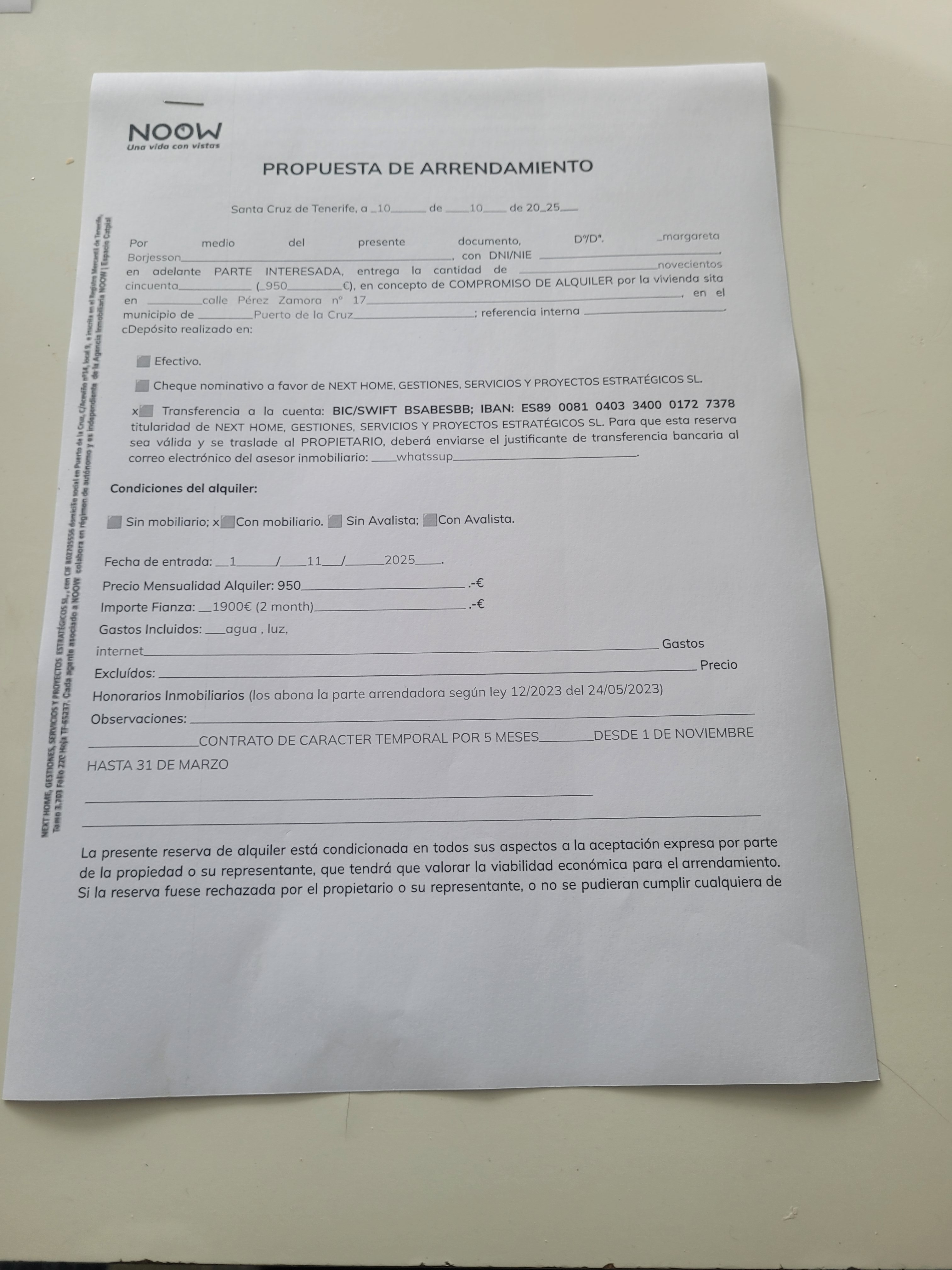 Får ”propuesta” med detaljer från Alejandra vid tvåtiden, lär mig att jag inte kan betala till ett ”nytt” land förrän om 24 timmar, efter att jag lagt till landet i ”kundkännedom” hos banken; fotar informationen och skickar till Alejandra, tillsammans med foto av underskrivet propuesta…