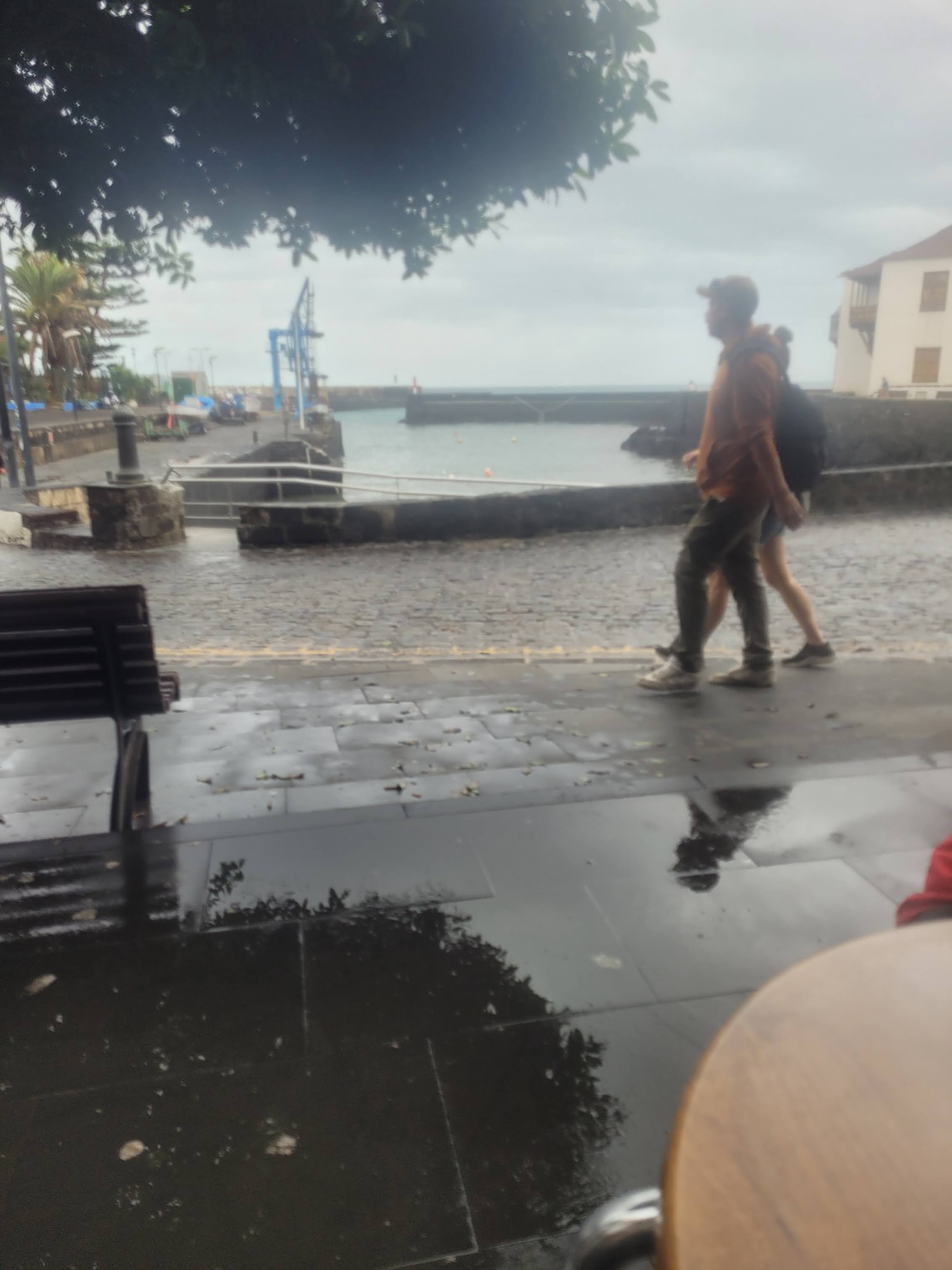 Hittade så småningom till en restaurang, El Pescador, och beställde spaghetti con seafood. Pastan var inte het så det störde, ”seafood” var tre gambas, ett par musslor, lite vitlök i oljan som det hela kokats i. Ingen parmesan eller annan riven ost. Jag blev mätt, på spaghettin. Fick be om svartpepparkvarn, efter att ha avböjt det pepparkar som stod på bordet. Ett glas kanariskt rödvin till, bröd som jag borde ha tackat nej till och en flaska vatten, dito. Det hela kostade mer än det smakade, 23,91 Euro. Går inte dit igen.