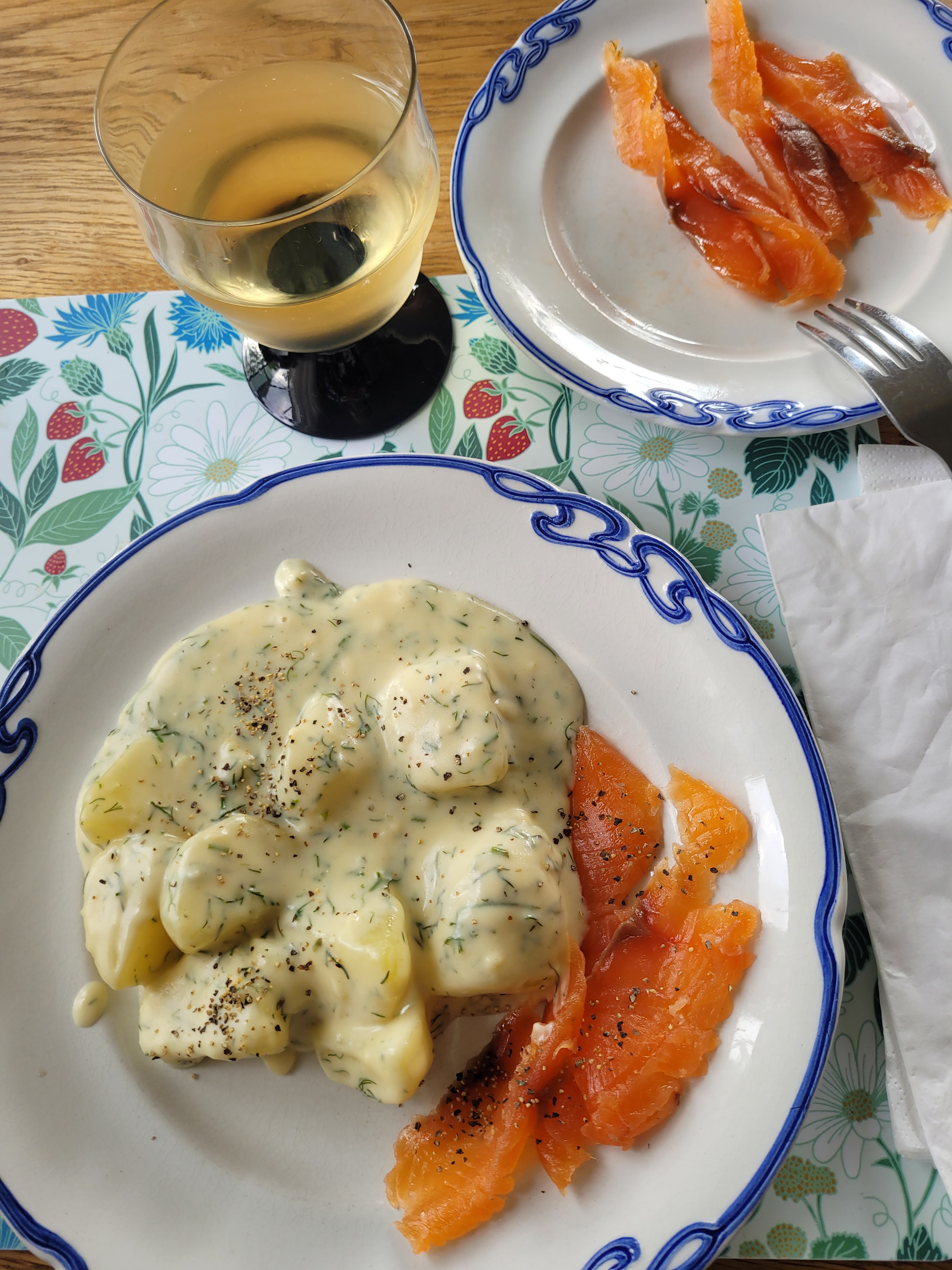 Klockan är halv fem, jag är fortfarande mätt efter lunchen – undrar om mina ”ungdomar” är det också? Tänker hur som helst inte laga någon middag förrän vid sextiden, förmodligen lätt mjölkstuvade makaroner, smaksatta med muskotnöt, och stekt falukorv. Kollar, nej de är inte heller hungriga ännu.