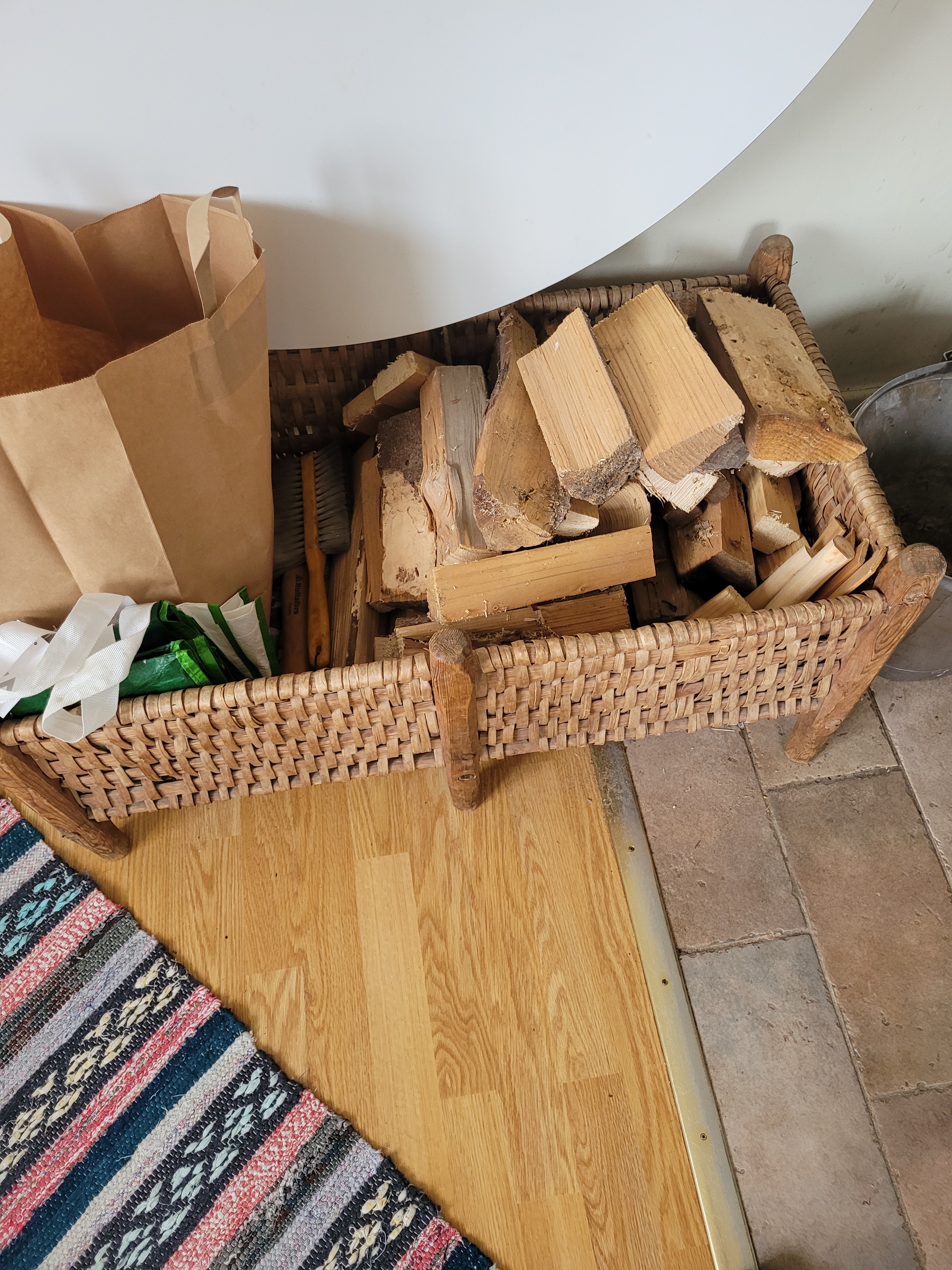 Jag har ätit min middag, och är nöjd. Diskar om en stund. Eldar lite till. Klockan är fem. Och det är alldeles för tidigt för att vara färdig med den här dagen. Även om jag diskat. Vad ska jag göra? Smörja in händerna, det är bra. Vika tvätt, okej det också. Sedan då? Läsa, nja. Har sådär lagom lite lust att läsa de böcker jag har på köksbordet, en fantasy och en annan om ett oönskat arv.