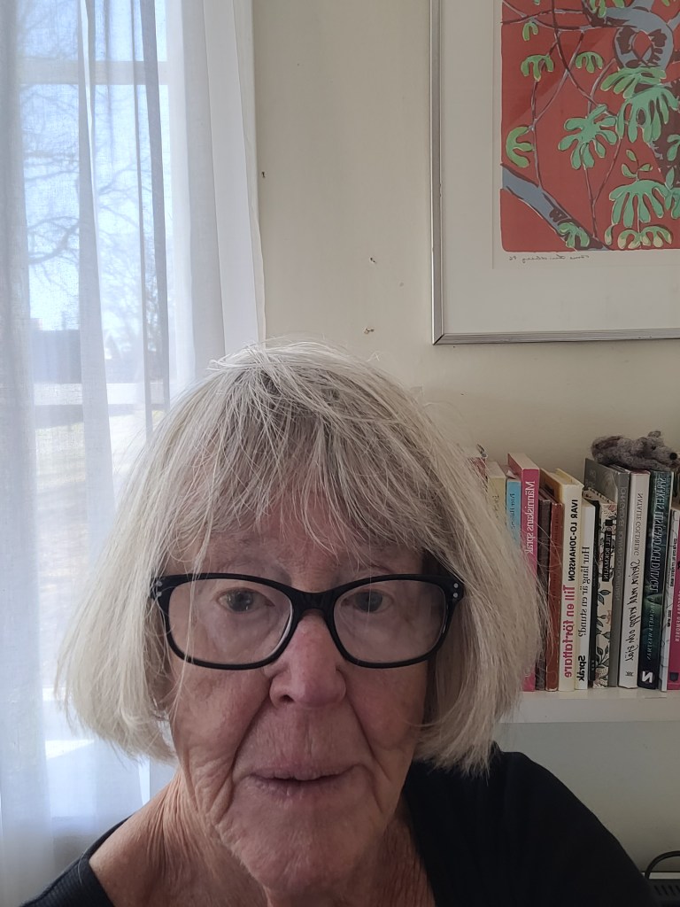 Måndag, sol och moln. 12 grader, och ungefär lika blåsigt som igår. Jag letar i mina bokhyllor efter beställd Bokbörsen-bok, hittar den inte. Får fortsätta leta efter frukosten. Sätter på en tvättmaskin med lakan.