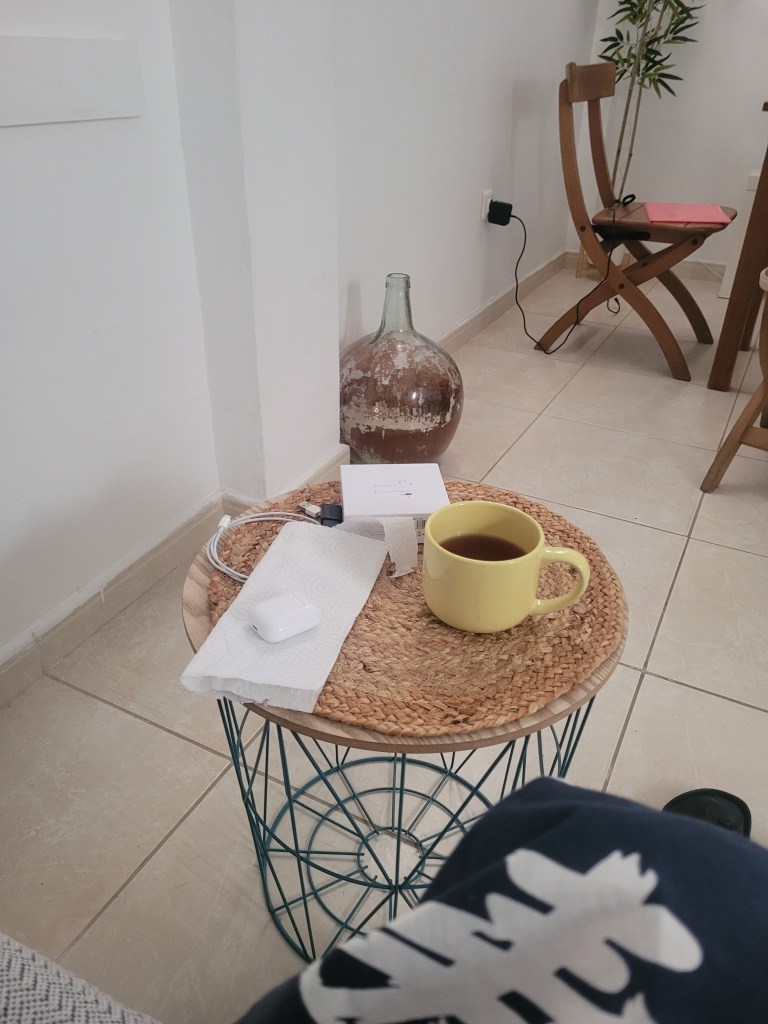 Klockan är kvart över 10, jag är kaffesugen. Tvättmaskinen går inne i toalettrummet, och jag törs inte riktigt lämna den innan den är klar. Det får bli fika hemma. Con bocaditos sabor lemón, medan håret torkar och tvättmaskinen surrar. Nu 23 grader ute.