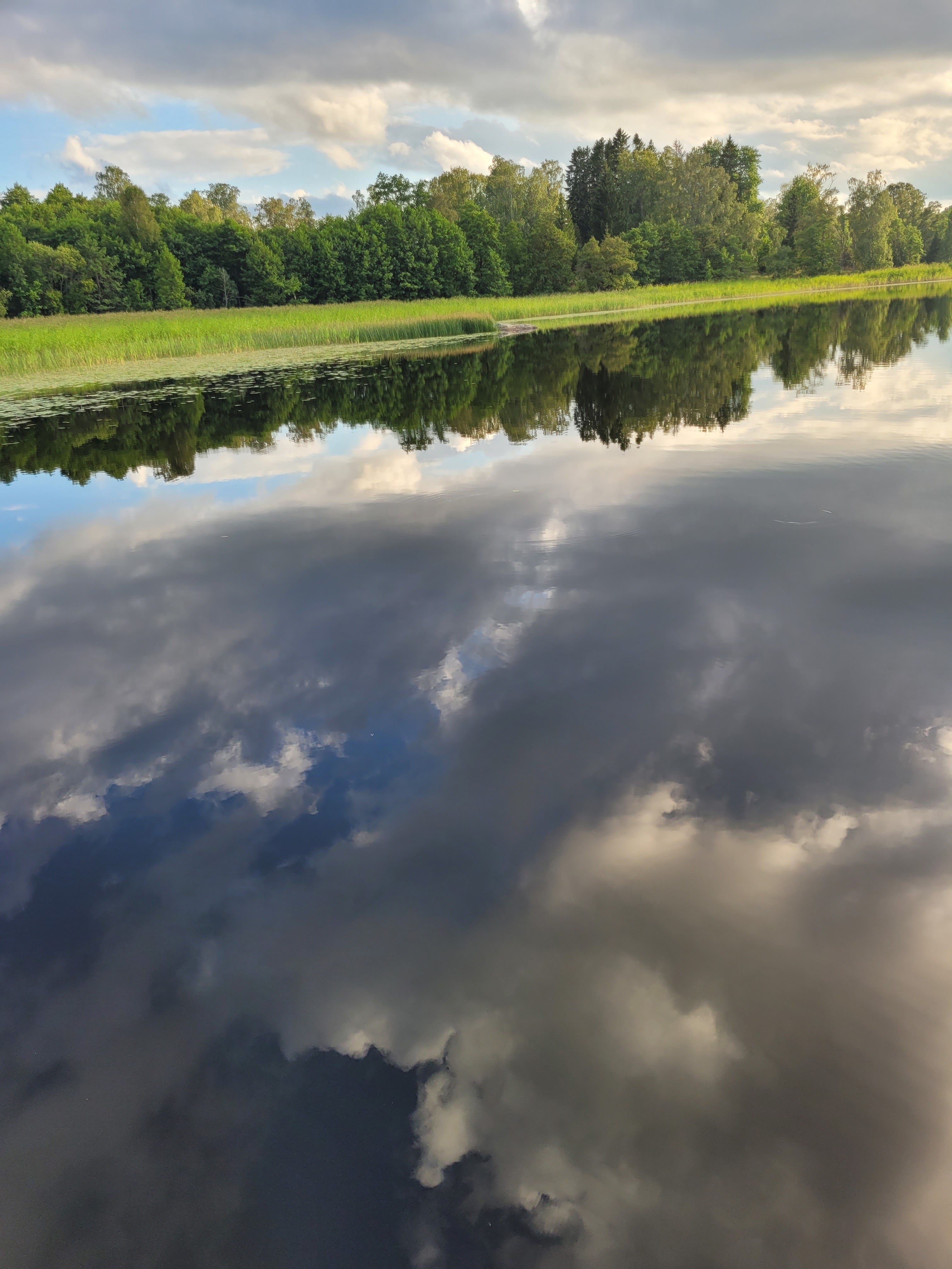 Jag tog ett dopp när jag väl var hemma, och med vägen till och från sjön är mina steg idag drygt 6 000. Sensorn mäter tyvärr inte alla böjningar kroppen gjort… Nöjd med dagen. Kvällen är så här långt fortfarande solig och fin, klockan är snart sju. Sjön var vacker och lugn.