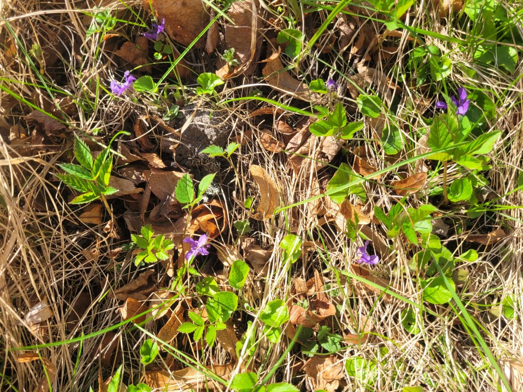 Gamla trötta påskliljor har återuppstått lite här och där. De första gullvivorna har slagit ut, och gräset utanför huset är fullt av små djupblå violer. Scillan har gjort sitt, men det finns gula tunna blomster, och gula mera sippliknande. Några små tulpaner i den ovårdade rabatten, och annars mest blad som varit något en gång. Kaprifolen under vardagsrumsfönstret ser gles ut, men en del blad kommer även i år. Den borde antagligen både klippas ner i höst och gödslas, få mera jord. Har ännu en risig kaprifol runt ett träd vid klädstrecket, än ser den inte grön ut. Jag är en dålig trädgårdsmästare, har inte ärvt pappas gener inom den professionen.