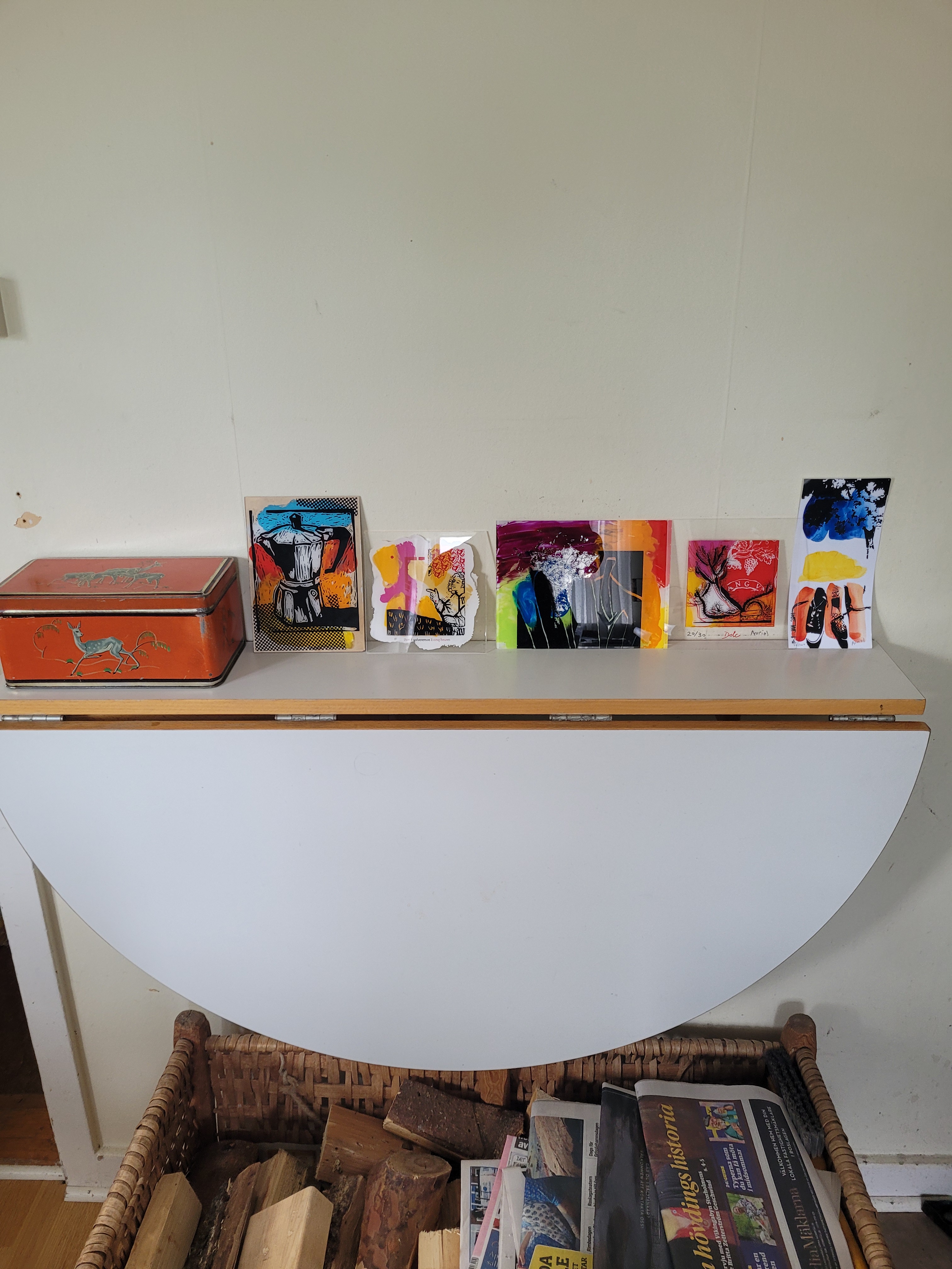 Mosters kakskrin passar fint tillsammans med konst som Philippe Auriol, Paris, har skapat, allt ovanför min vedkorg hemma i köket