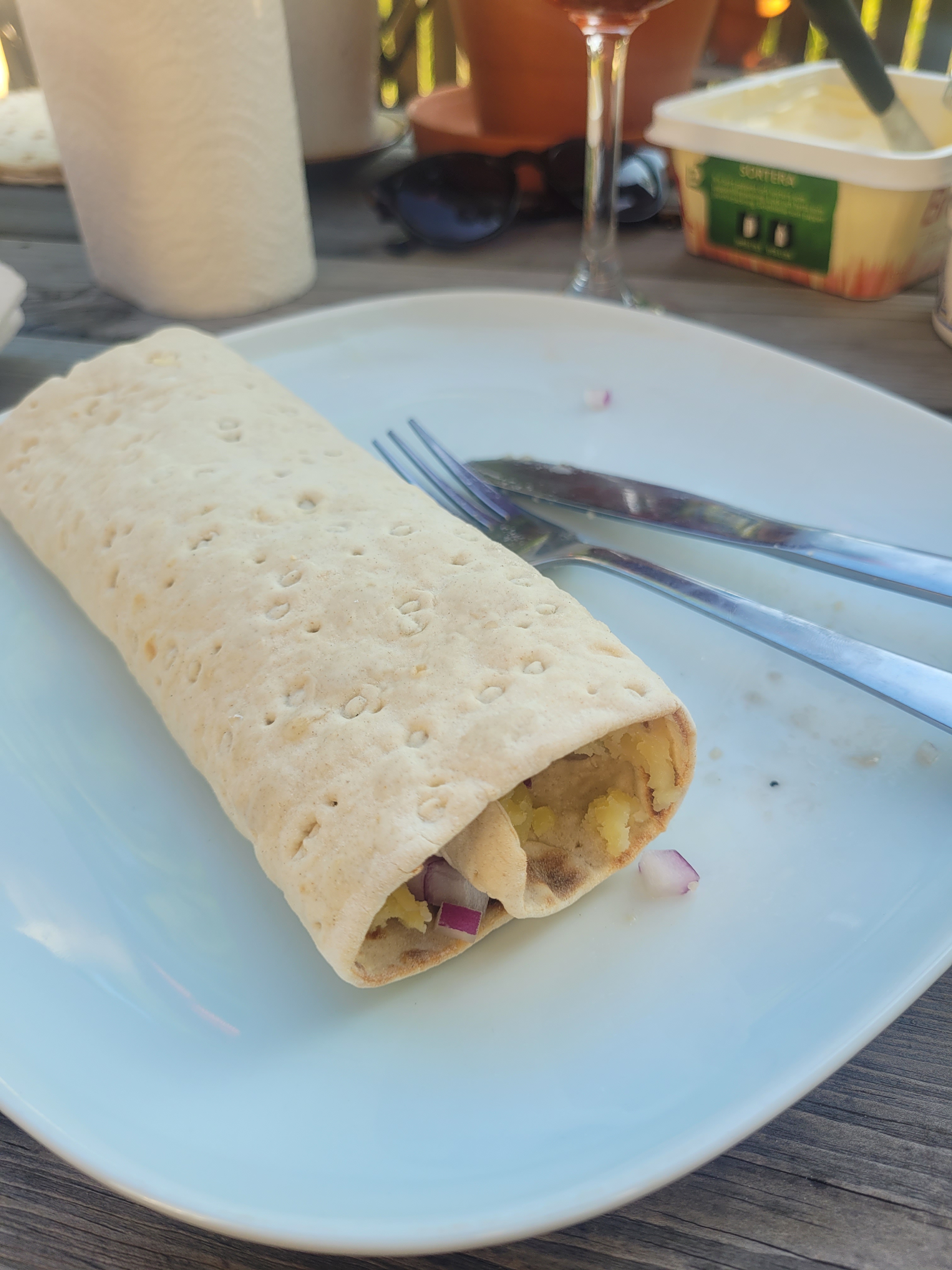 Vaknar tidigt måndag morgon, det har regnat under natten. Klockan sju är jag redan klar med frukosten, avslutar med en platt persika, paraguayo (?). Klar med wordle och sudoku, syrran leder wordfeud – förstås, när hon startade med ”smördeg” för 60 poäng. Svårt att ta igen.